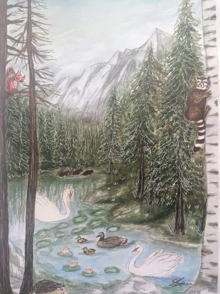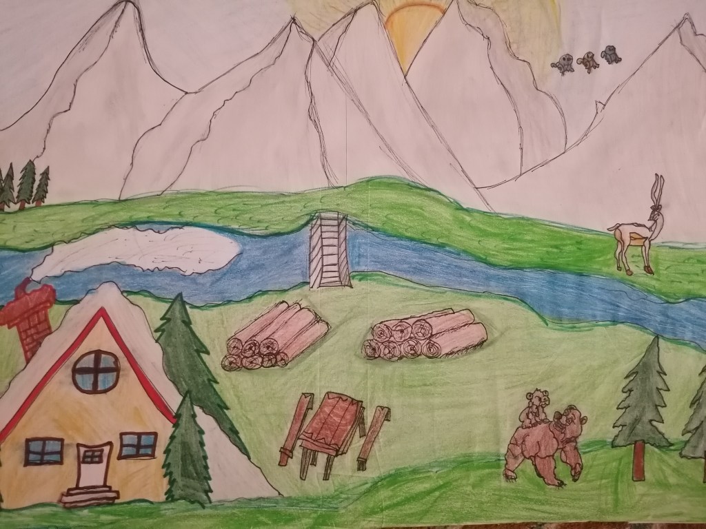 Petcu Mirela Amalia (CN Spiru Haret Tecuci) cu desenul Reverie montană-dinastia urșilor dintre brazi – 90 p